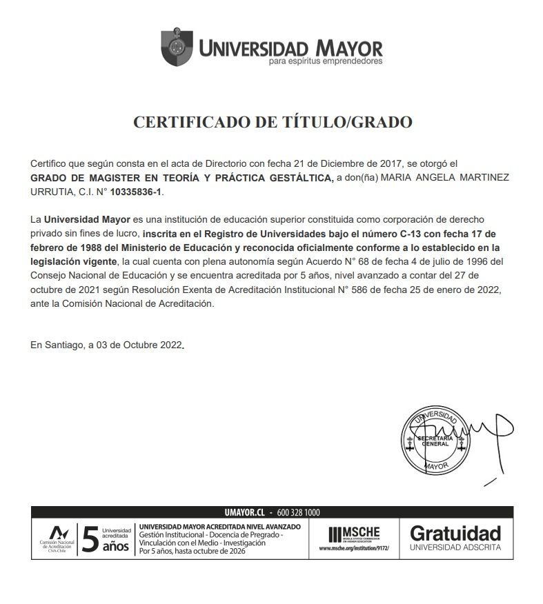 Soy psicóloga PUC, terapeuta gestáltica con formación en trastornos de personalidad. Acompaño procesos desde un enfoque centrado en la conciencia, la responsabilidad y el desarrollo de recursos personales.